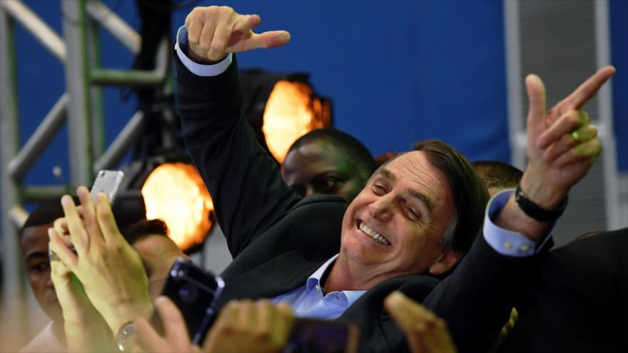 Jair Bolsonaro, ultraderechista excapitán del ejército, afronta el reto de convertirse en el próximo presidente de Brasil con un discurso autoritario y radical. Con cerca de tres décadas de carrera parlamentaria y siete mandatos como diputado federal, el ya oficialmente candidato, de 63 años, del Partido Social Liberal (PSL) lidera por un corto margen las encuestas para las próximas elecciones de octubre. Con un largo historial de declaraciones racistas, misóginas y homofóbicas, Bolsonaro volvió el domingo a dar protagonismo en su discurso a los cuerpos policiales y a sus “hermanos” de las Fuerzas Armadas. Aunque reconoció “no entender” de economía, Bolsonoro dejó claro que su agenda económica busca “el liberalismo” y “quién sabe si hasta extinguir la mayoría de las estatales”. Para ello ha sumado a su causa al economista Paulo Guedes, un liberal que apuesta por una disminución drástica del Estado brasileño y del gasto público. “Nosotros tenemos de todo y observen lo que somos: no somos nada”, afirmó el aspirante presidencial, brasileño por el Partido Social Liberal (PSL), Jair Bolsonaro mientras puso como ejemplo al régimen de Israel. La popularidad de Bolsonaro ha ido creciendo notoriamente, pues hace tres años contaba con apenas un 5 % de apoyos en los sondeos de intención de voto y hoy lidera con un 20 % en un escenario sin el expresidente Luiz Inácio Lula da Silva, líder del Partido de los Trabajadores (PT), preso y virtualmente inhabilitado. El descrédito en los partidos tradicionales por los múltiples escándalos de corrupción, la violencia desbocada en muchas regiones del país y la severa crisis económica, han impulsado a este polémico candidato que considera abiertamente que el presidente de EE.UU., Donald Trump “es un ejemplo” a seguir. lvs/ncl/ask/hnb