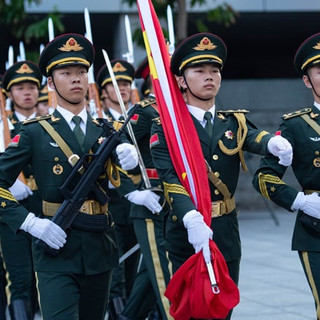 La ceremonia de celebración inició en el alba con el izado de la bandera roja con sus cinco estrellas amarillas que simbolizan la unidad del pueblo revolucionario bajo la dirección del Partido Comunista de China.